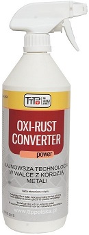 Rust is a heterogeneous layer of products from the oxidation of iron and its alloys, featuring strong hygroscopic characteristics. Often during removal, small particles of rust remain in the surface pores, which — after a certain period of time — cause the corrosive process to resume. In order to solve this eternal problem, we have developed a piece of professional technology — power OXI-RUST CONVERTER. This is a milky synthetic emulsion that, after coming in contact with steel and under the influence of air humidity, converts iron oxides into a dark, hard coating. Such a hardened layer protects the surface against the resumption of corrosion. power OXI-RUST CONVERTER not only removes rust, but is also the perfect undercoat for any type of paint. Thanks to this, one single application of power OXI-RUST CONVERTER produces a triple effect: the removal of rust, protection of the surface and a perfect undercoat for paint. This technology is undeniably a time and money saver. After hardening, power OXI-RUST CONVERTER is water and solvent resistant.